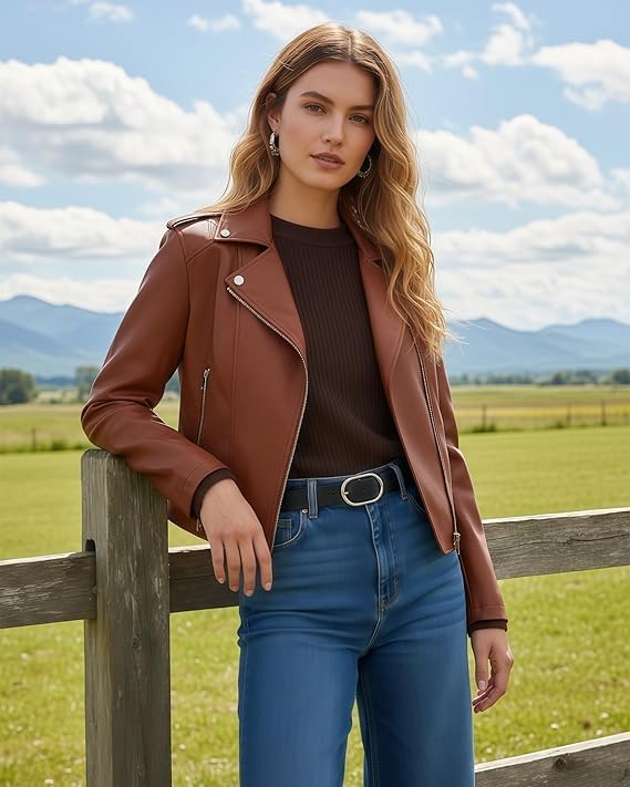 Add an iconic edge to your wardrobe with this Women’s Vintage Biker Leather Jacket. Crafted from premium genuine leather, it features a classic biker silhouette with a vintage finish that delivers timeless appeal. Designed for casual outfits and everyday wear, this jacket offers a comfortable fit, durable construction, and effortless style—perfect for layering across seasons.